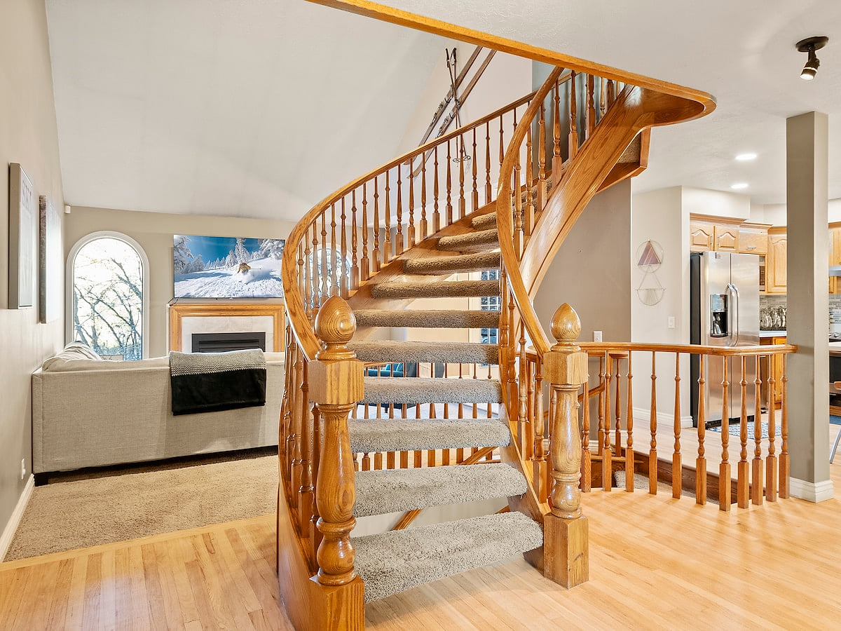 -Spiral staircase: "Ascend our unique spiral staircase to the upper level – a charming architectural detail that adds character to your stay.